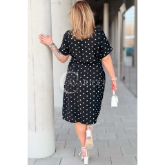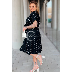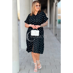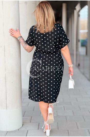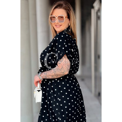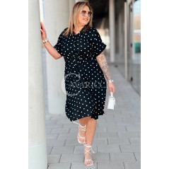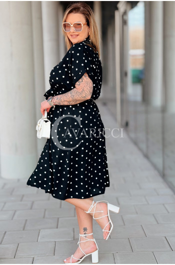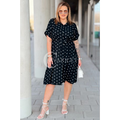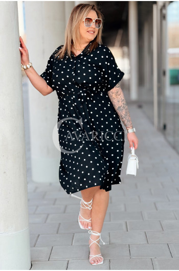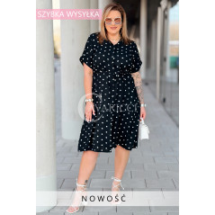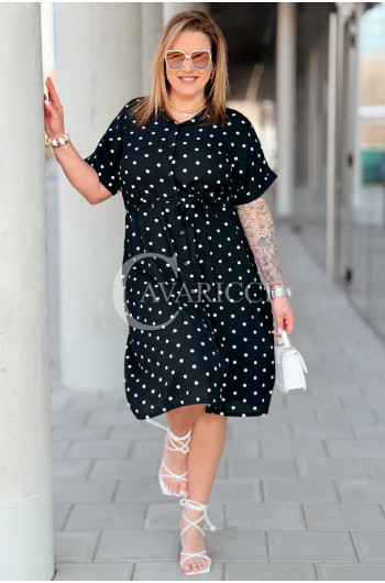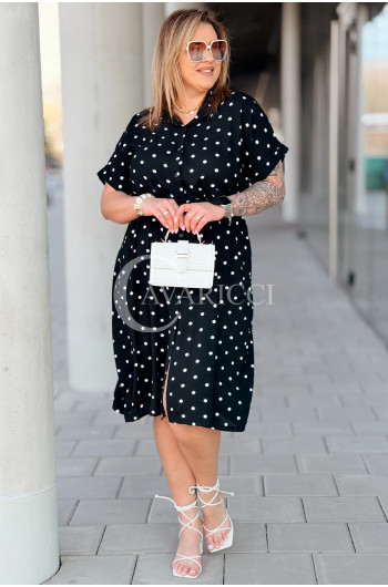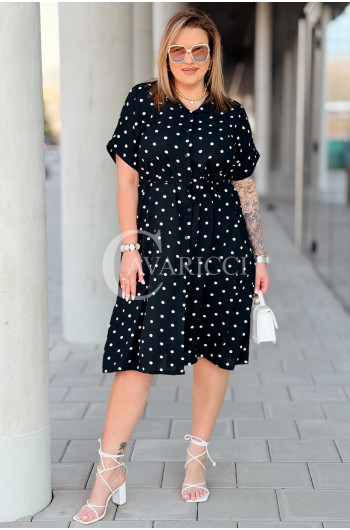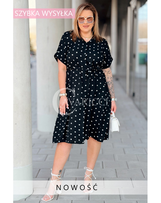 Sukienka VIVIANA – Koszulowy Fason w Groszki, Który Pięknie Modeluje Talię Kolor Czarny