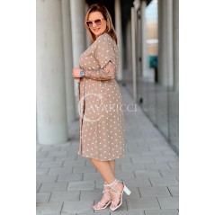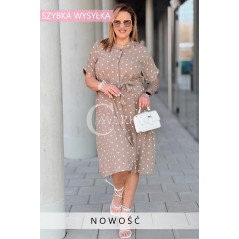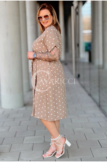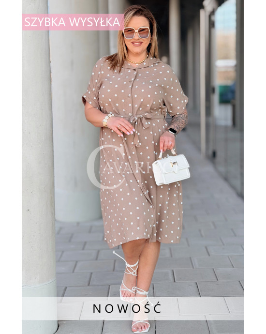 Sukienka VIVIANA – Koszulowy Fason w Groszki, Który Pięknie Modeluje Talię Kolor Fango