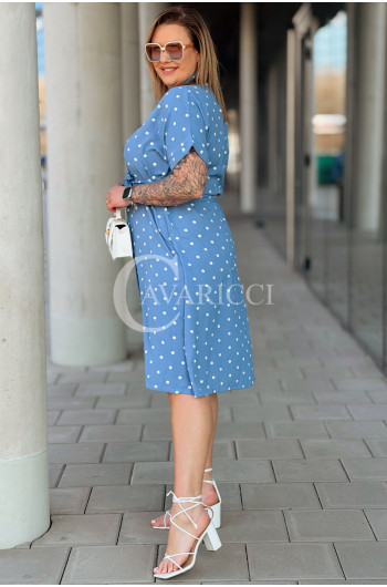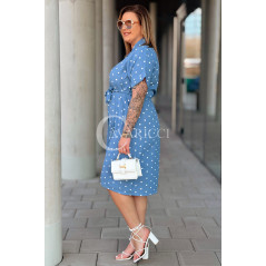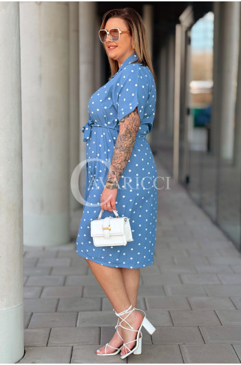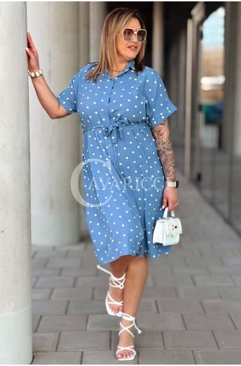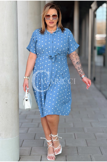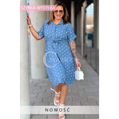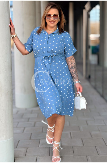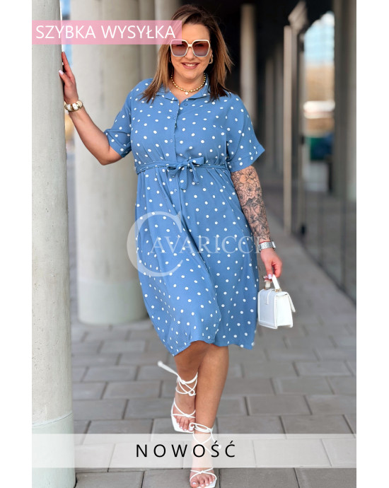 Sukienka VIVIANA – Koszulowy Fason w Groszki, Który Pięknie Modeluje Talię Kolor Błękit