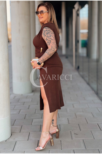 Dopasowana Sukienka DONATELLA – Elastyczny Ściągacz i Efekt WOW Kolor Czekolada