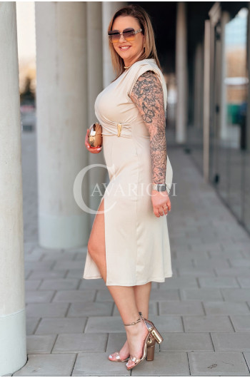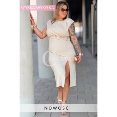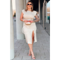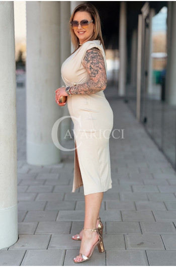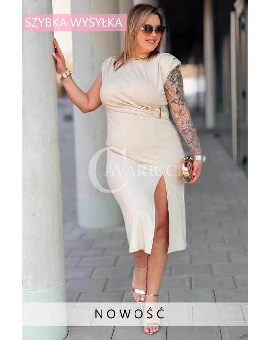Dopasowana Sukienka DONATELLA – Elastyczny Ściągacz i Efekt WOW Kolor Beżowym
