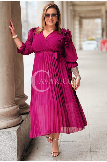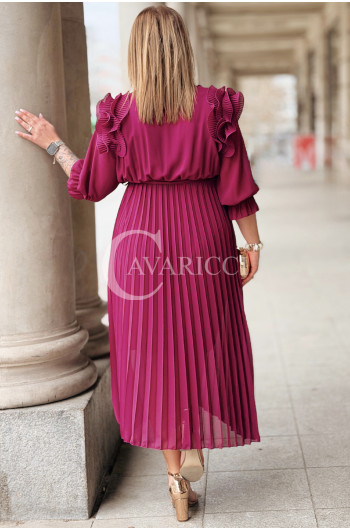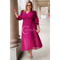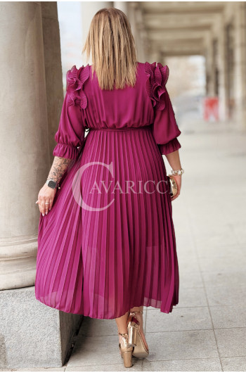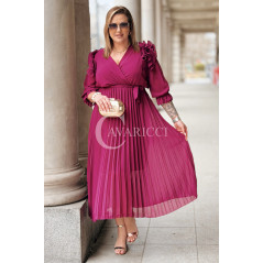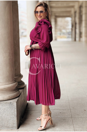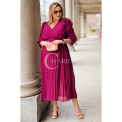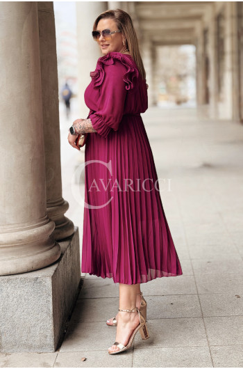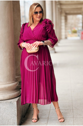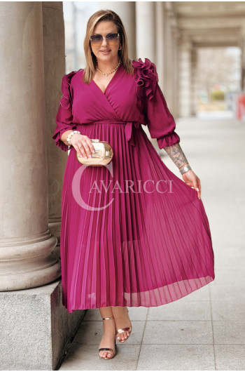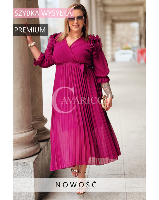 Elegancka Sukienka DINA – Luksusowe Plisy Idealne na Komunię i Wesele Kolor Purpurowy
