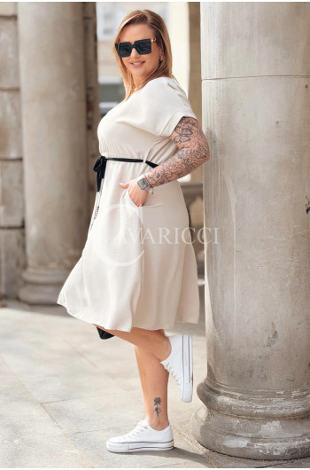 Sukienka LUANA – Codzienny Ulubieniec z Kieszeniami i Paskiem Kolor Beżowy