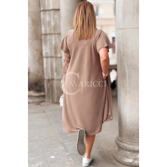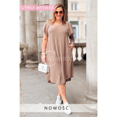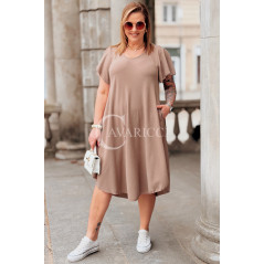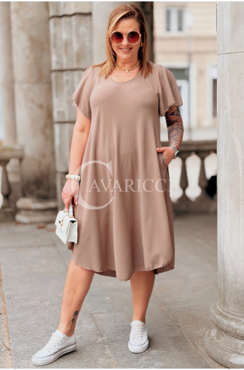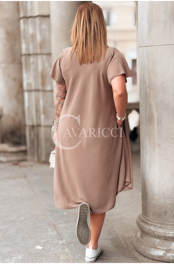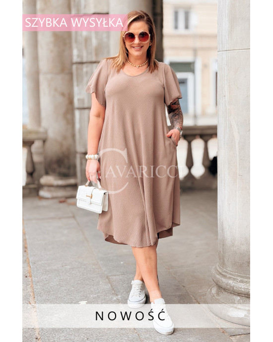 Nowość! Sukienka ELENA – Letni Luz, Asymetryczny Dół i Kieszenie Kolor Fango