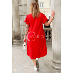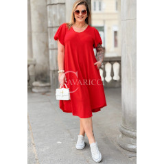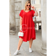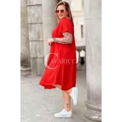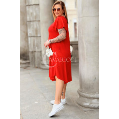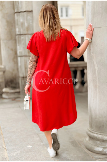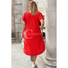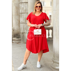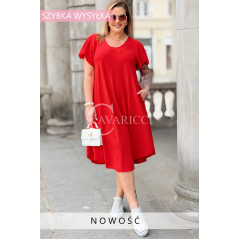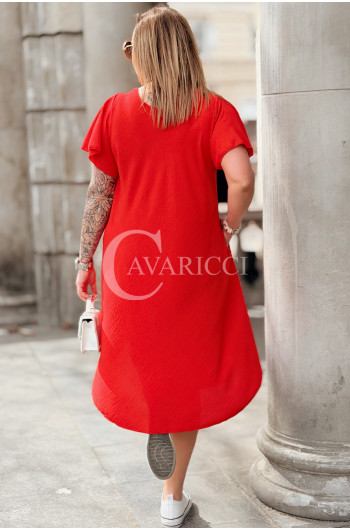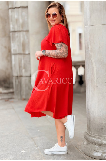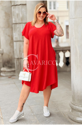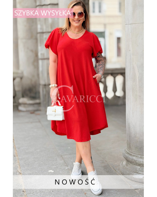 Nowość! Sukienka ELENA – Letni Luz, Asymetryczny Dół i Kieszenie Kolor Czerwony