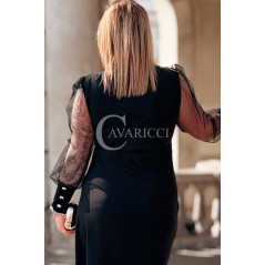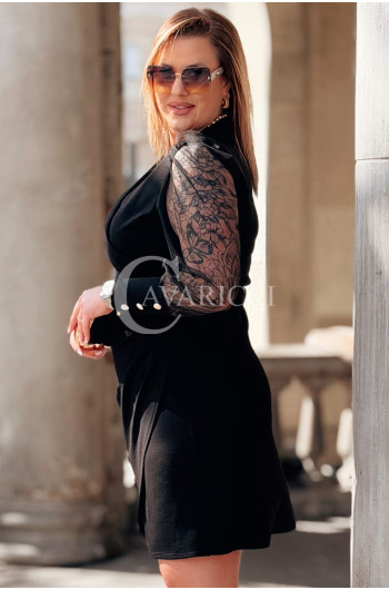 🌸 Zjawiskowe, półprzezroczyste rękawy z subtelnym wzorem sprytnie i elegancko kamuflują ramiona, dodając całości niesamowitej lekkości bez efektu pogrubienia.