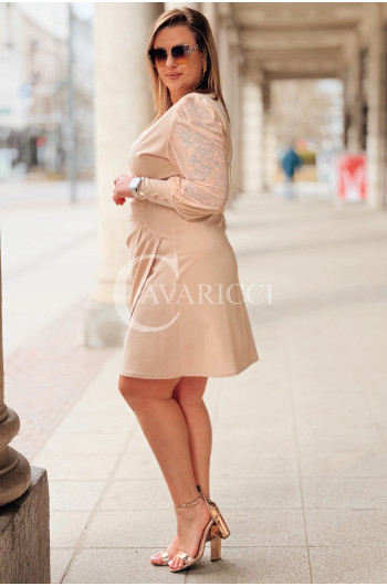 🌸 Zjawiskowe, półprzezroczyste rękawy z subtelnym wzorem sprytnie i elegancko kamuflują ramiona, dodając całości niesamowitej lekkości bez efektu pogrubienia.