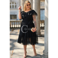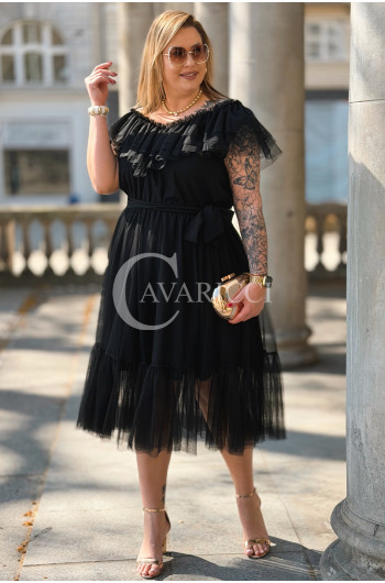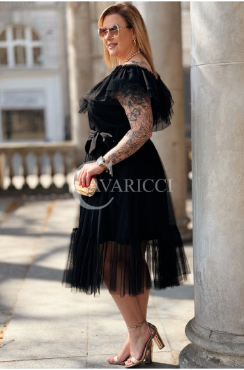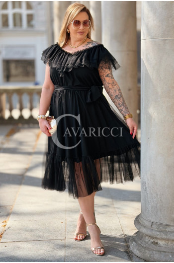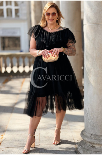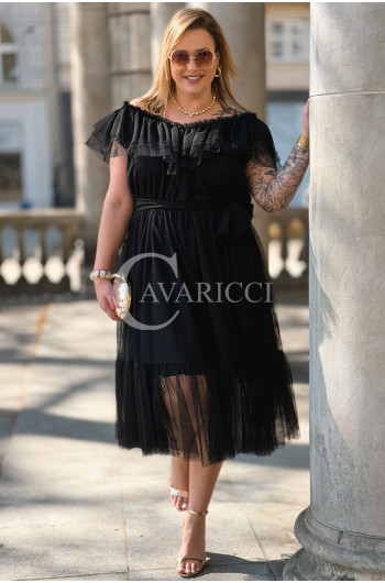 Sukienka PRINCESSA Premium – Zjawiskowy Tiul i Zmysłowa Hiszpanka w Kolorze Czarnym