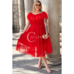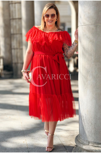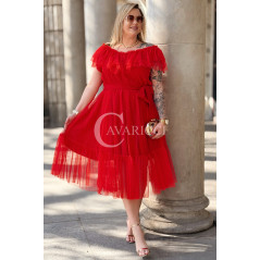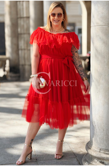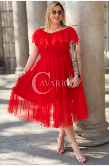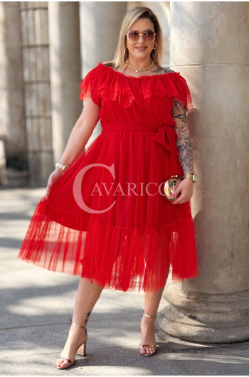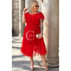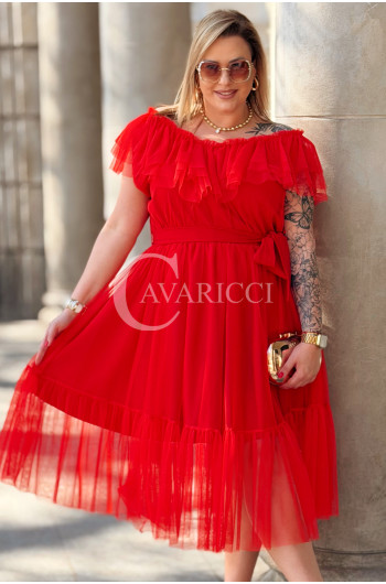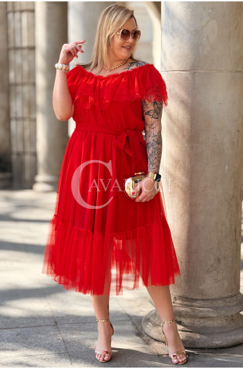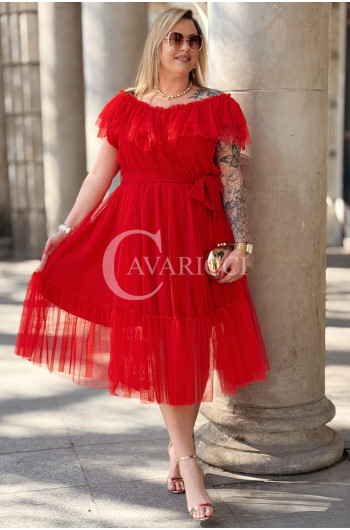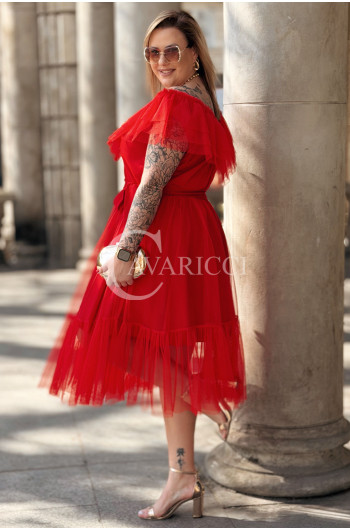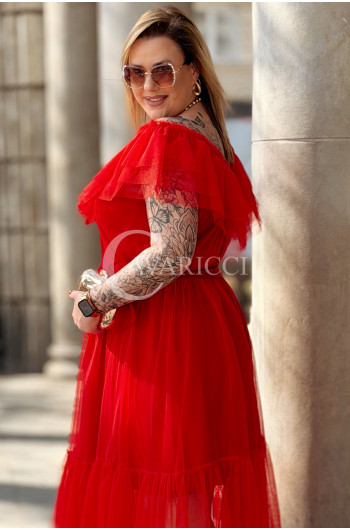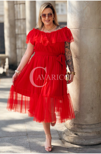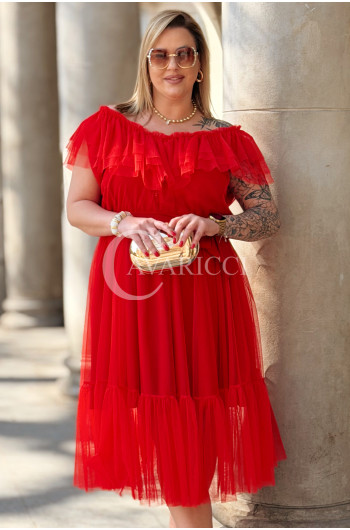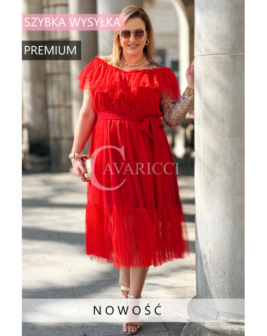 Sukienka PRINCESSA Premium – Zjawiskowy Tiul i Zmysłowa Hiszpanka w Kolorze Czerwieni