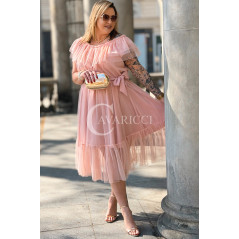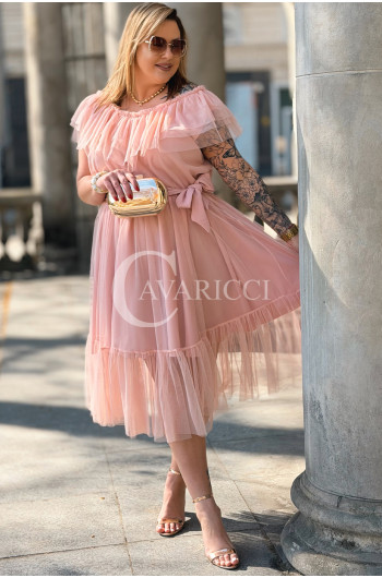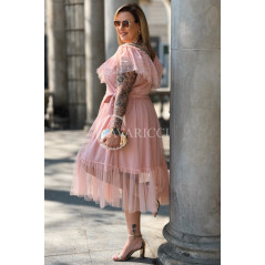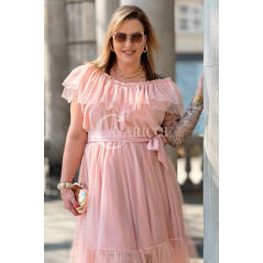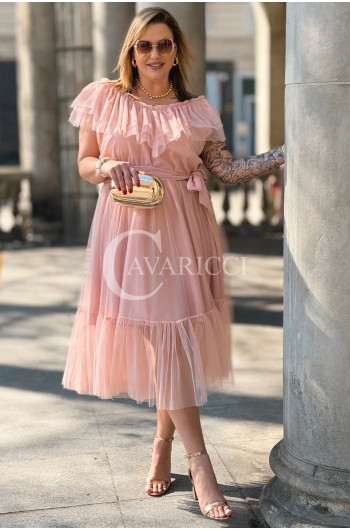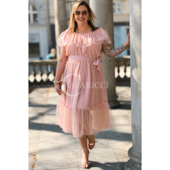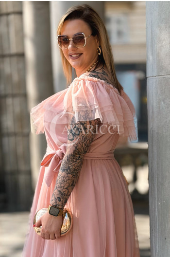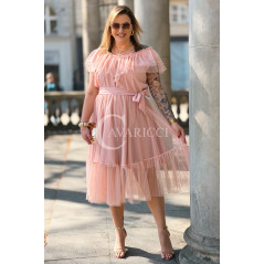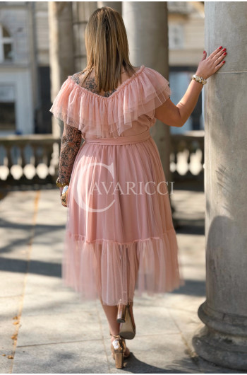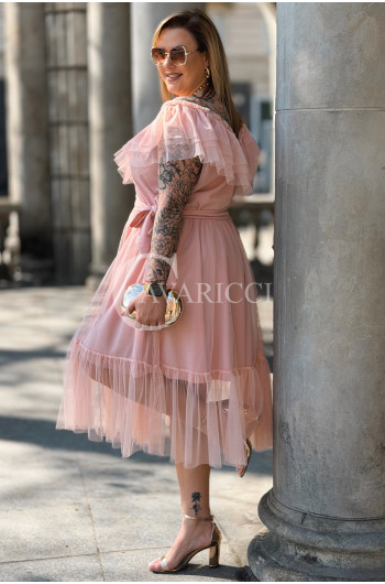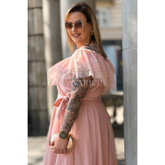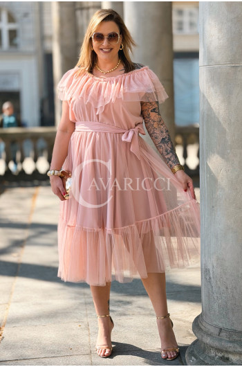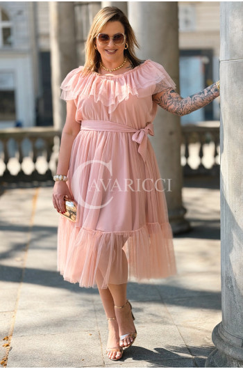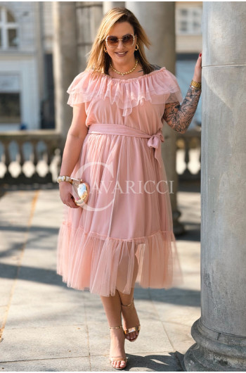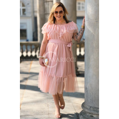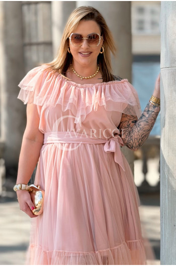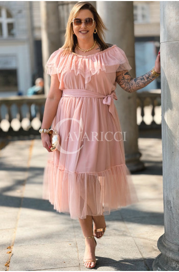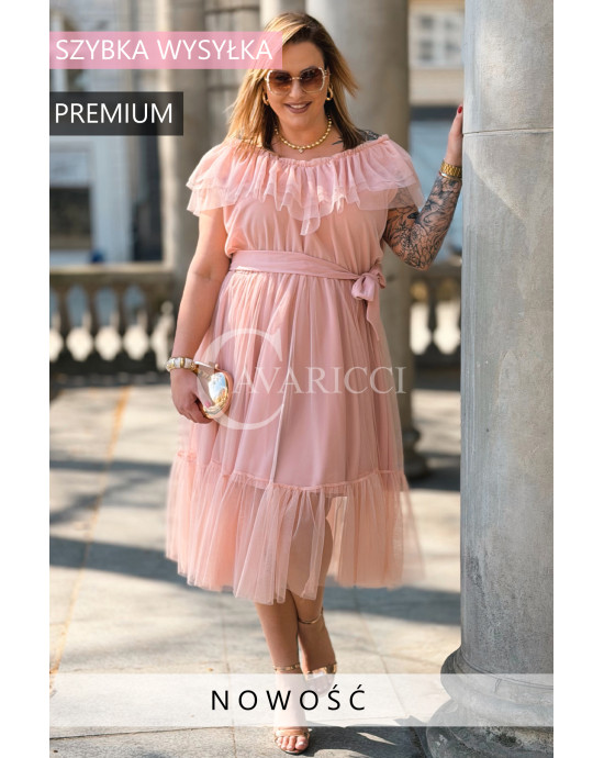 Sukienka PRINCESSA Premium – Zjawiskowy Tiul i Zmysłowa Hiszpanka w Kolorze Pudrowy Róż