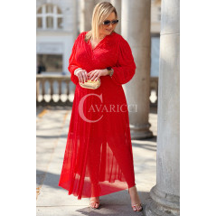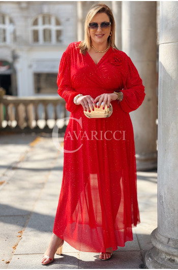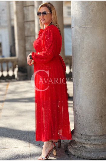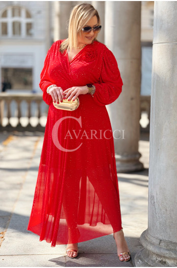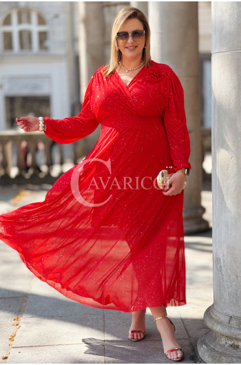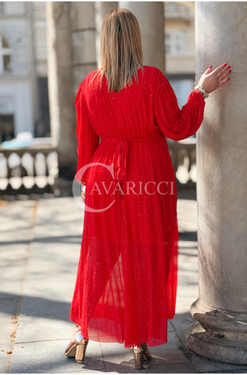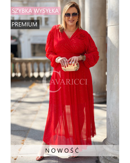 Sukienka VINCENZA Premium – Błyszczący Tiul i Zjawiskowy Efekt Gwiezdnego Pyłu Kolor Czerwony