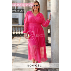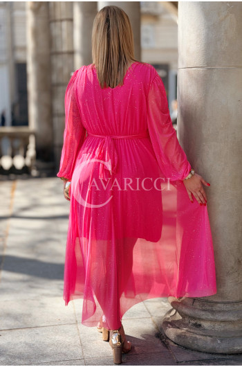 Sukienka VINCENZA Premium – Błyszczący Tiul i Zjawiskowy Efekt Gwiezdnego Pyłu Kolor Fuksja