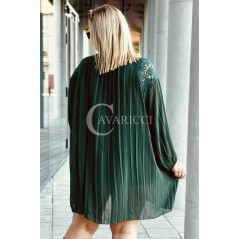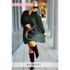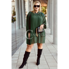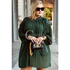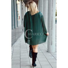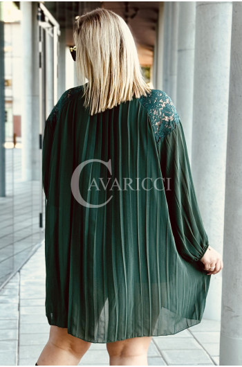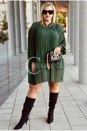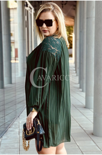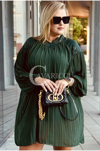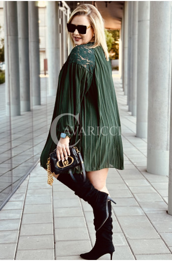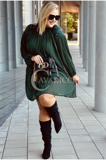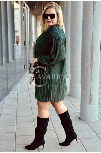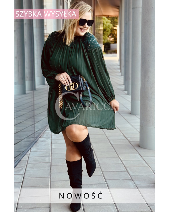 AREZZO - Premium plisowana sukienka z koronkową stójką w kolorze butelkowej zieleni