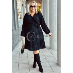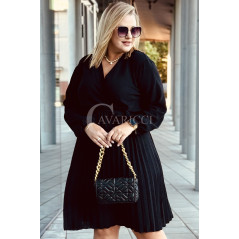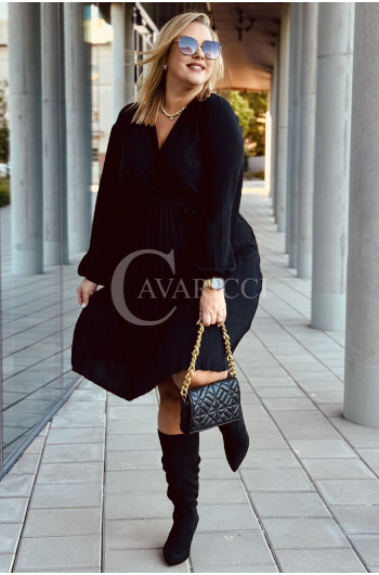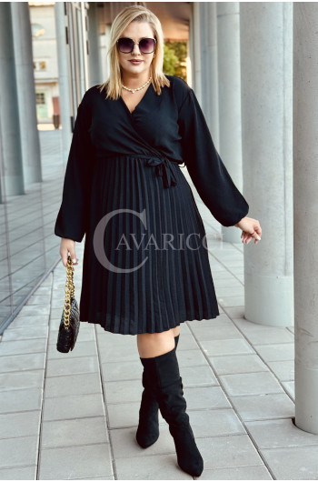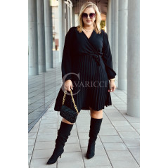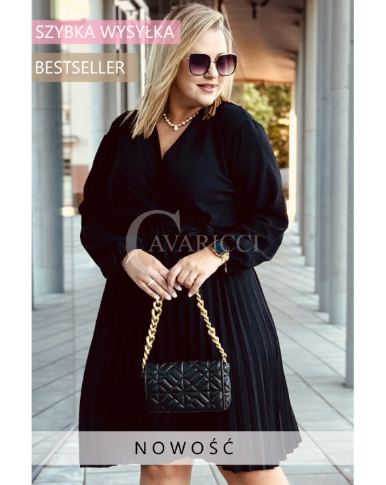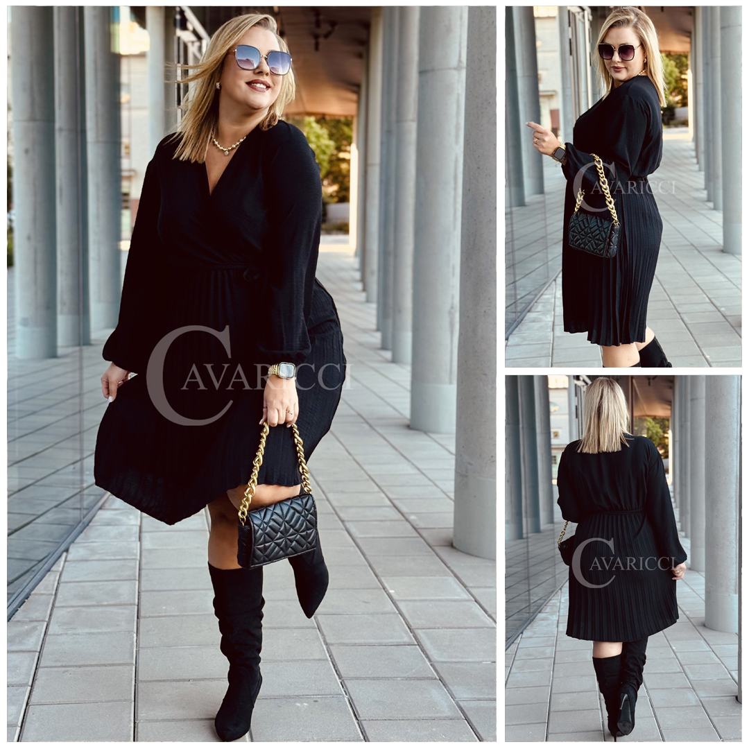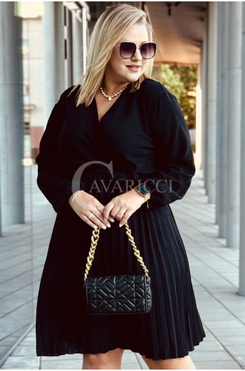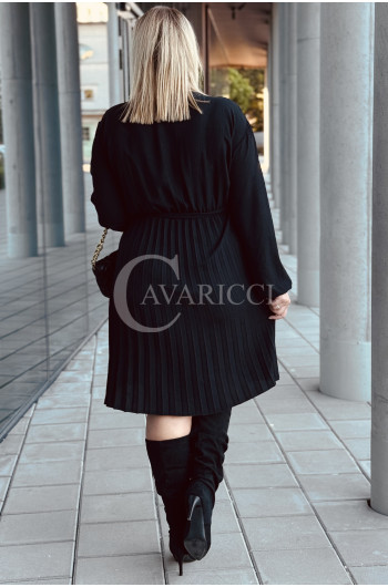 FILIPPA - Plisowana sukienka z długim rękawem i przekładanym dekoltem w kolorze czarnym