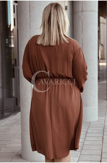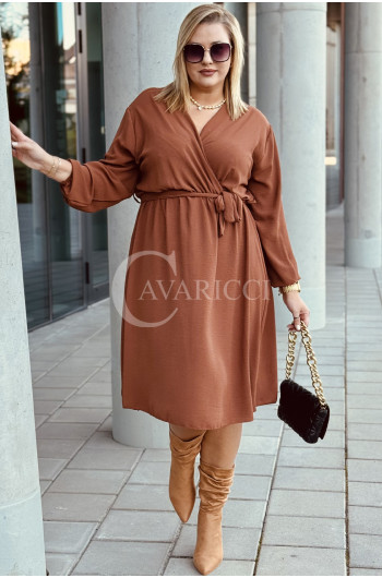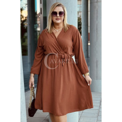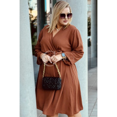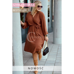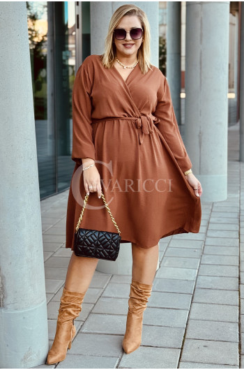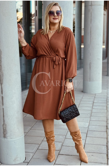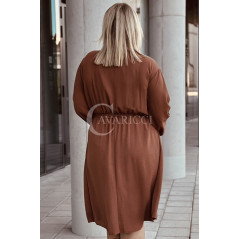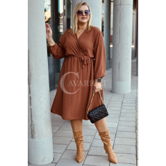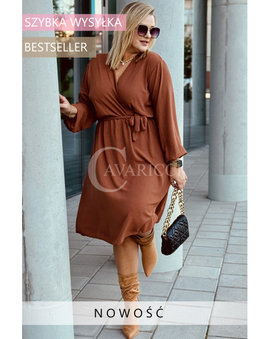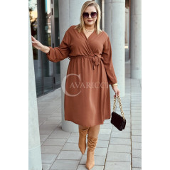 MARITTA - Prosta jesienna sukienka do kolana z długim rękawem w kolorze karmelowym