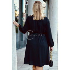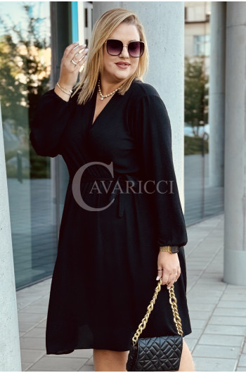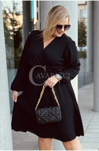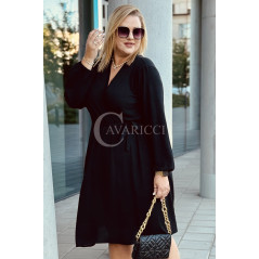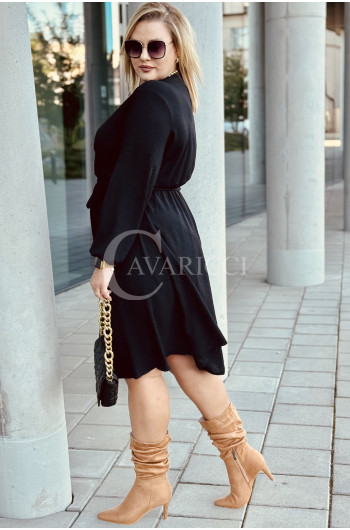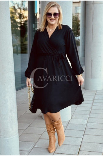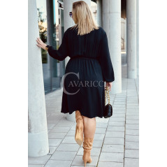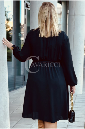 MARITTA - Prosta jesienna sukienka do kolana z długim rękawem w kolorze czarnym