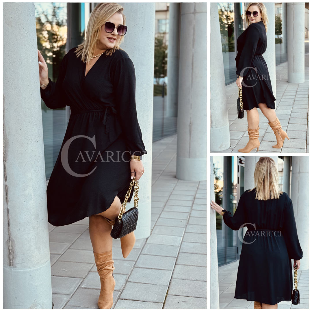 👗 Klasyczny krój z kopertowym dekoltem – pięknie podkreśla biust i wydłuża szyję