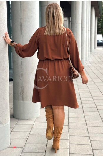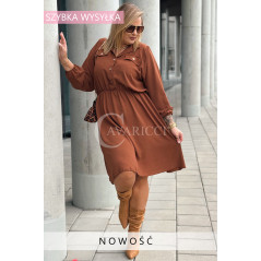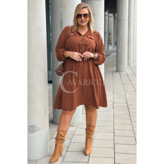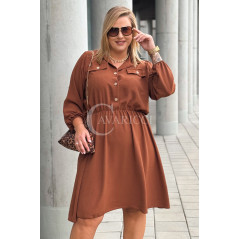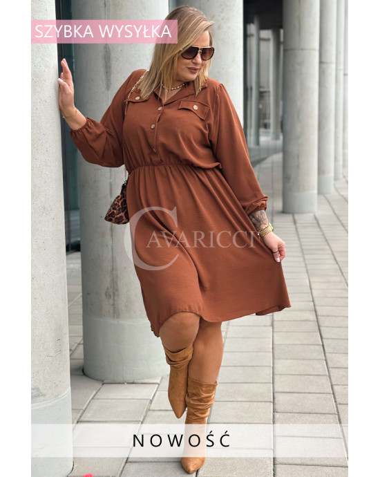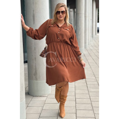 CASERTA - Koszulowa sukienka z guzikami i długim rękawem w kolorze karmelowym