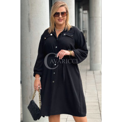 MONZA- Koszulowa szmizjerka z guzikami i długim rękawem w kolorze czarnym