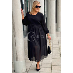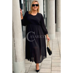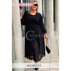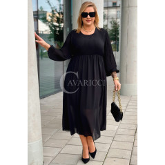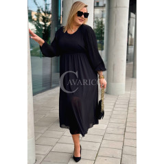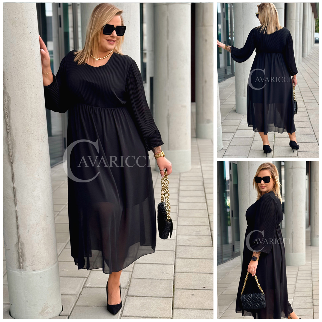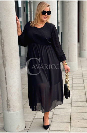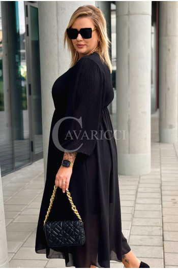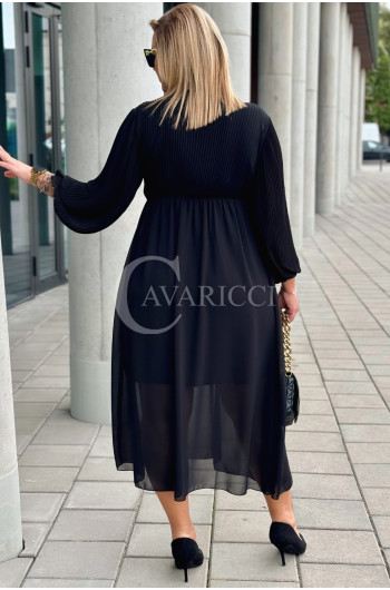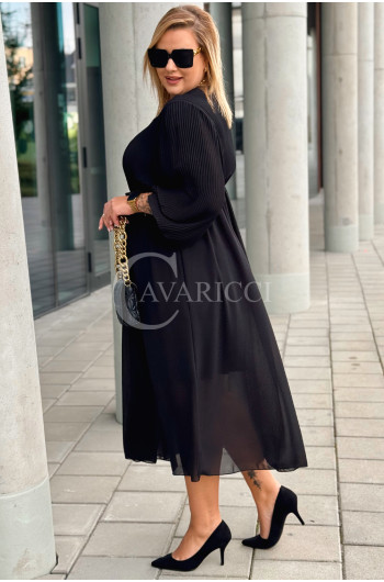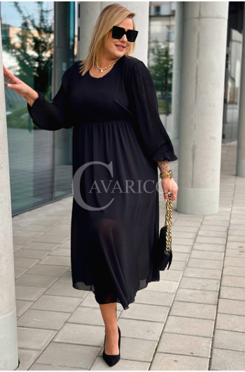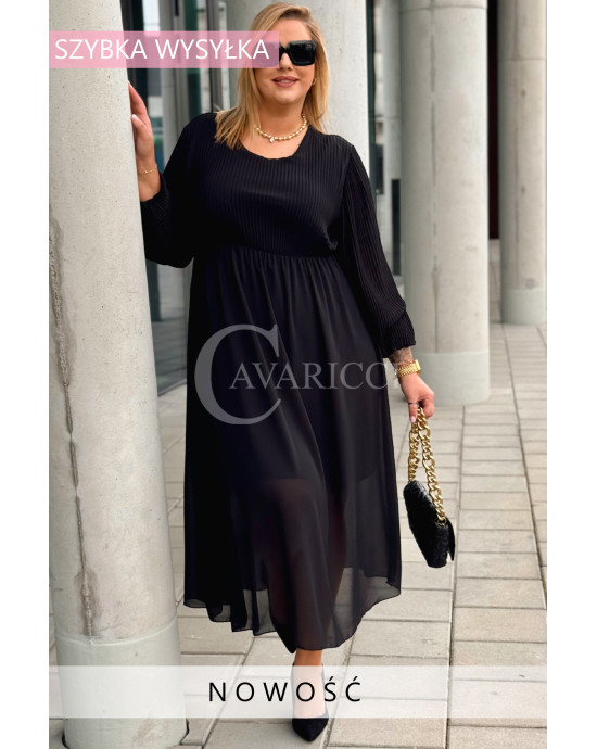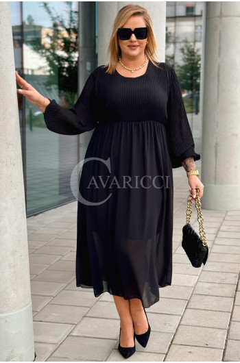 BELLUNO - Elegancka sukienka z plisowaną górą w kolorze czarnym