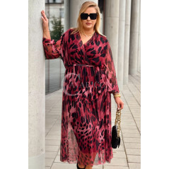 PROMOCJA ❤️ ADRIANA - Sukienka z delikatnej siateczki, w print panterkowy na różowym tle