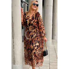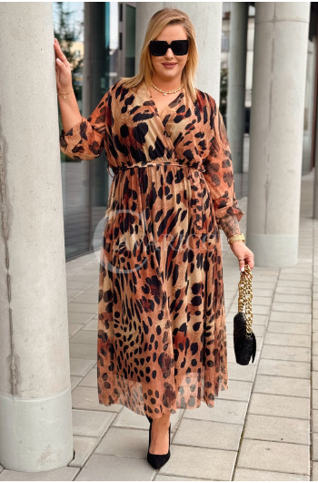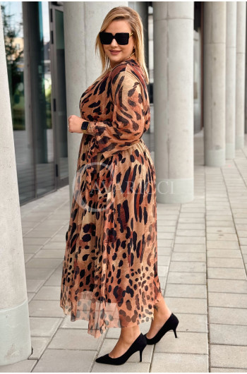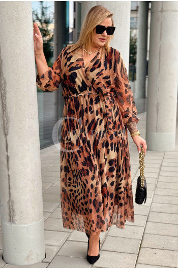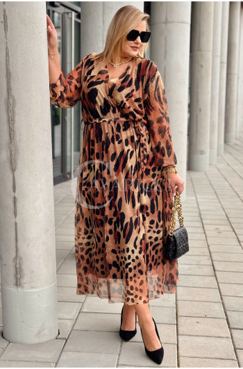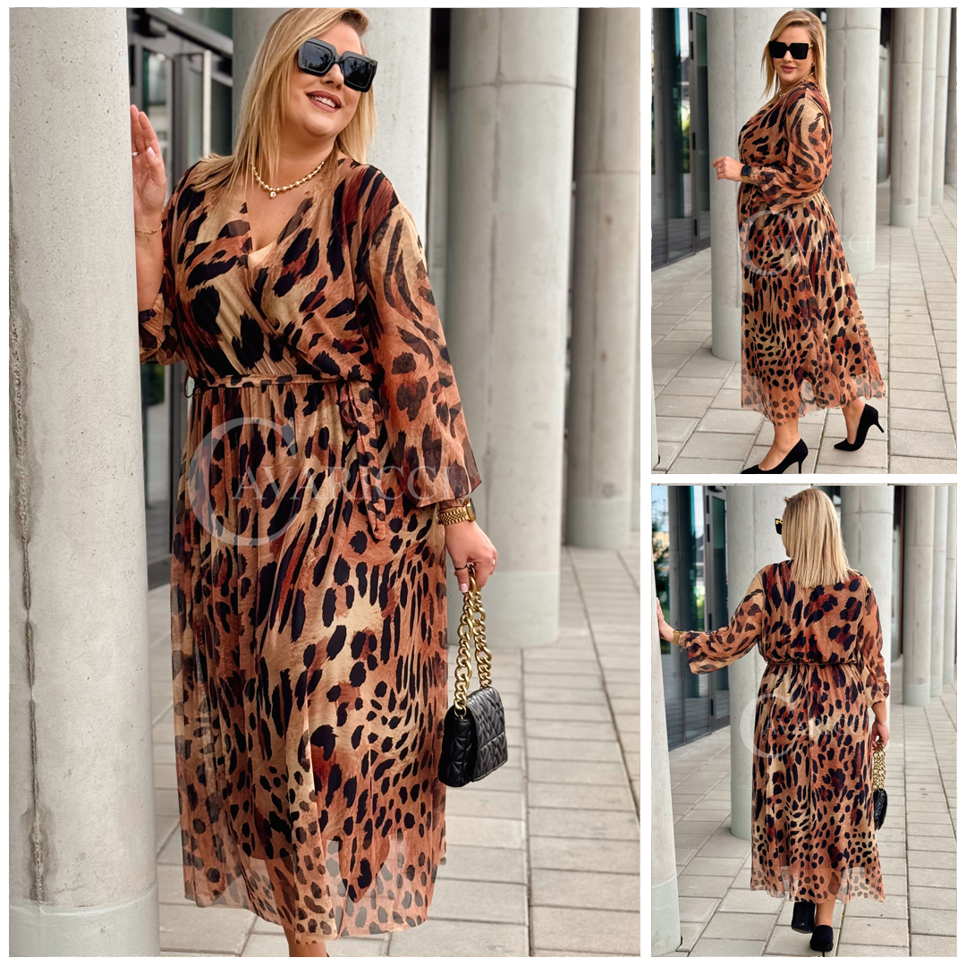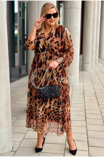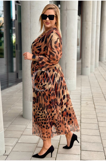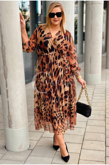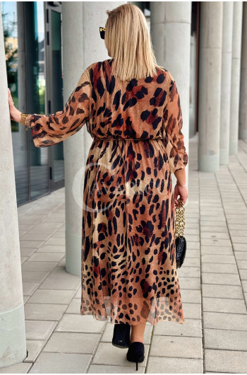 PROMOCJA ❤️ ADRIANA - Sukienka z delikatnej siateczki, w print tygrysi