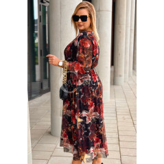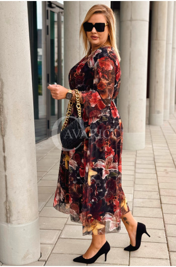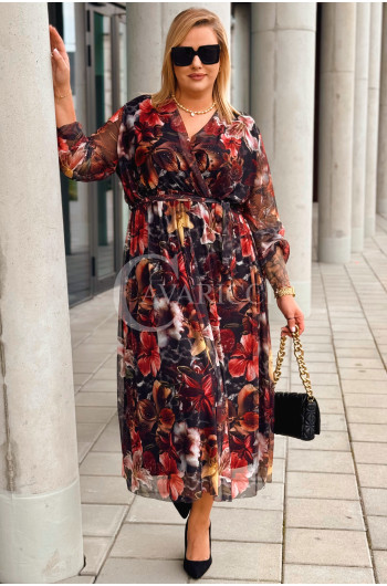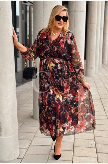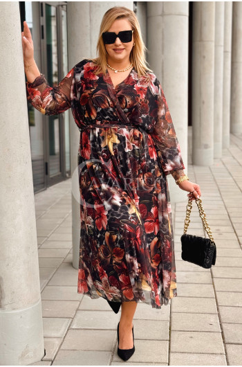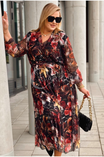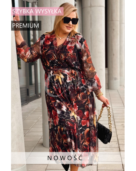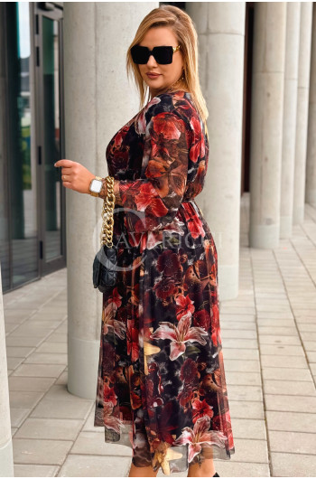 PROMOCJA ❤️ ADRIANA - Sukienka z delikatnej siateczki, w print kwiecisty