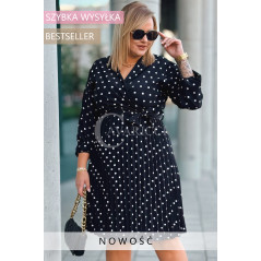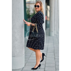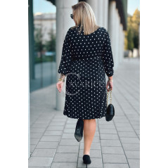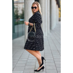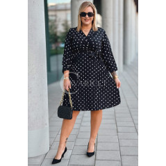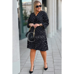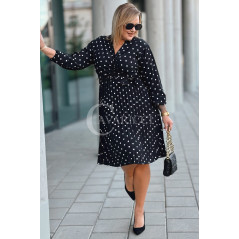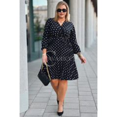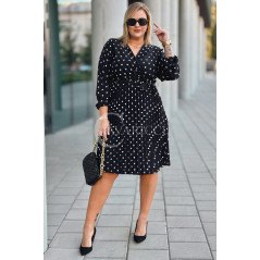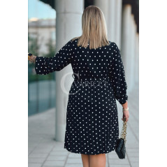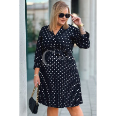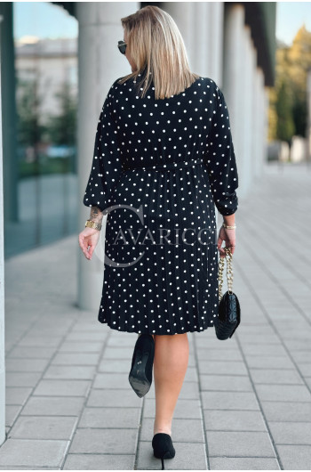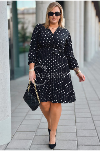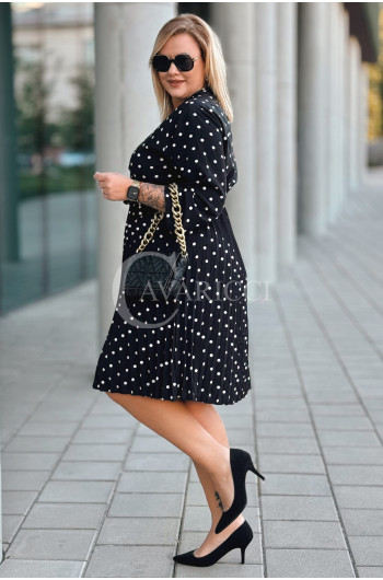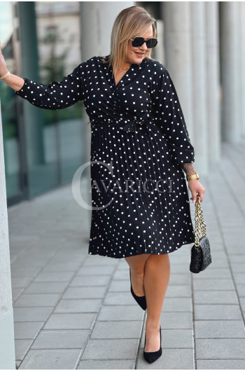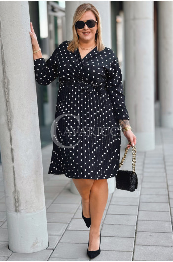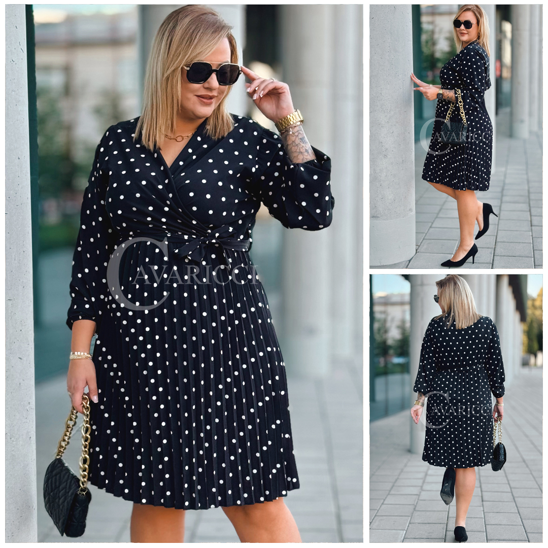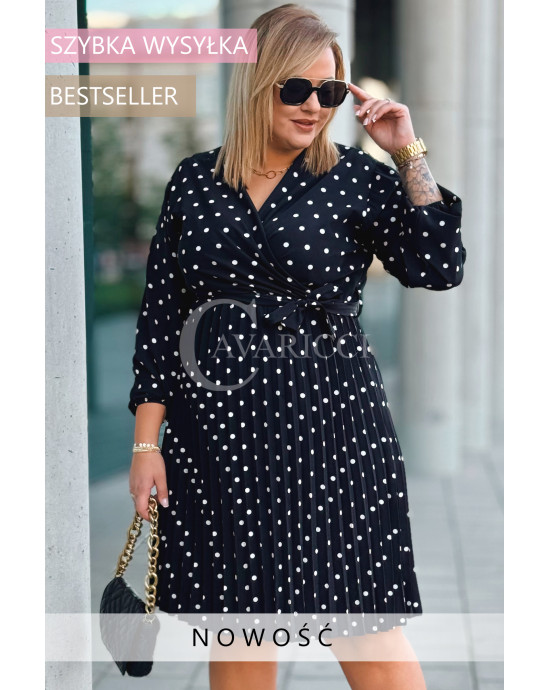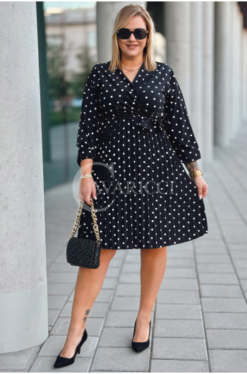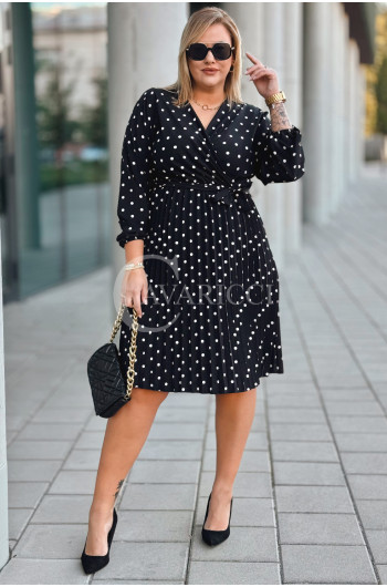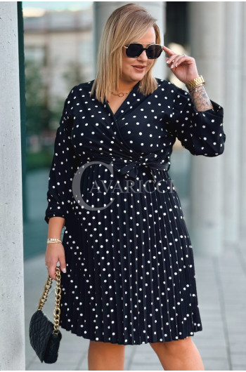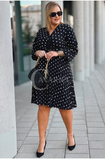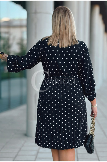FILIPPA - Plisowana sukienka z długim rękawem i przekładanym dekoltem w groszki w kolorze czarnym