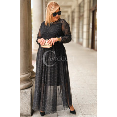 ✨ Delikatny tiul z drobnymi błyszczącymi kropeczkami – efekt WOW w ruchu