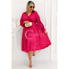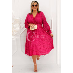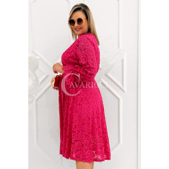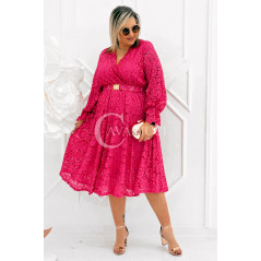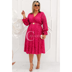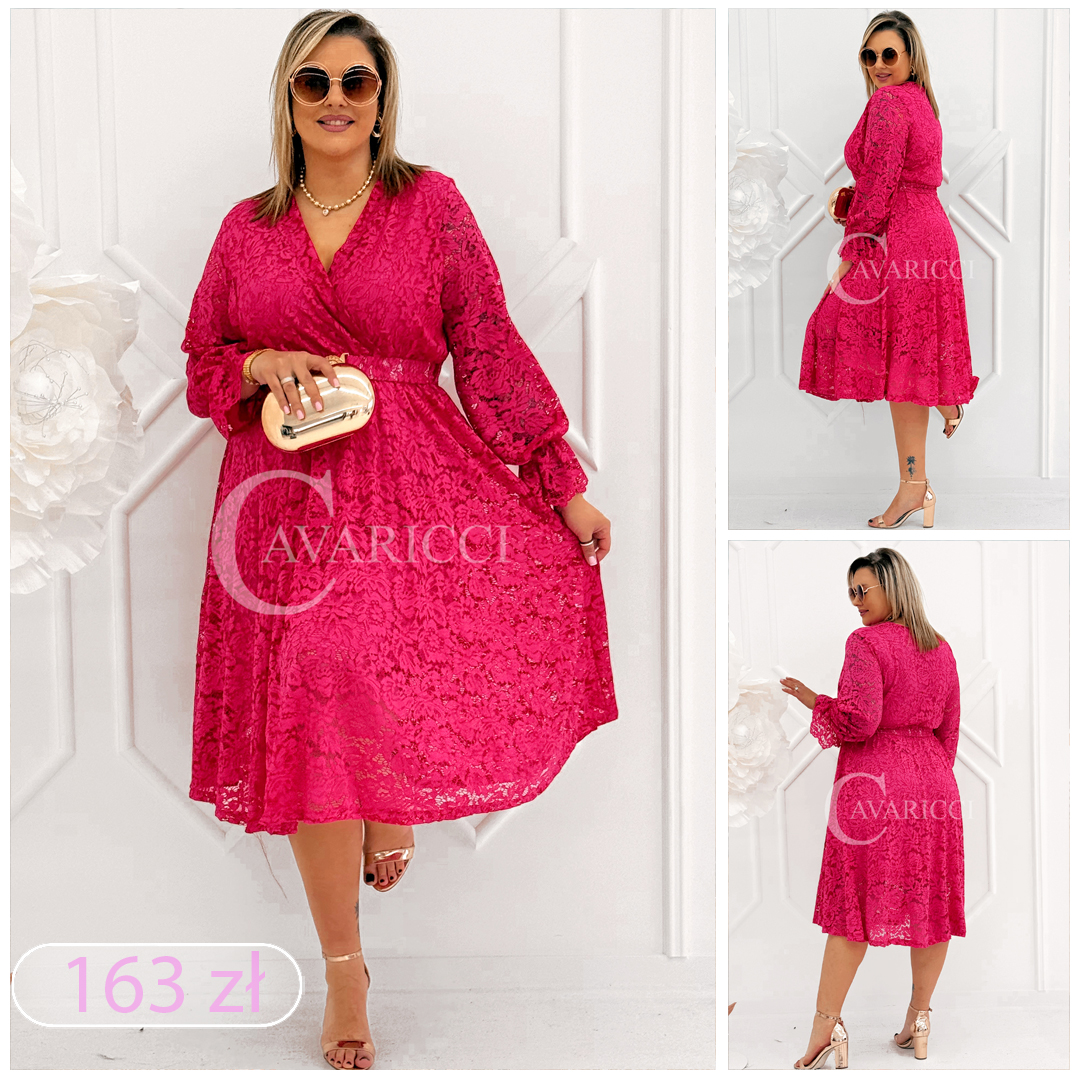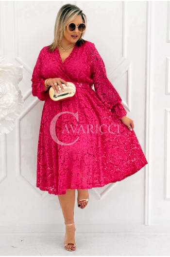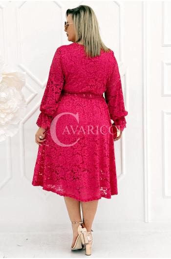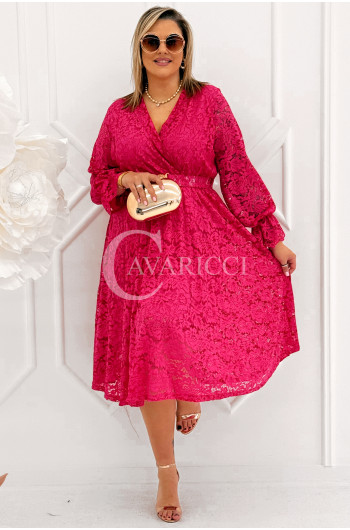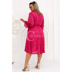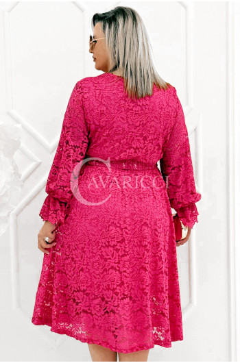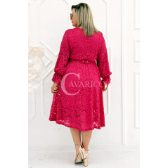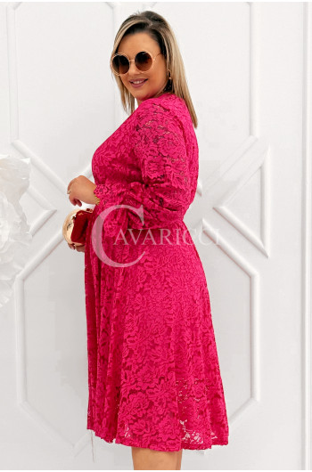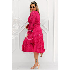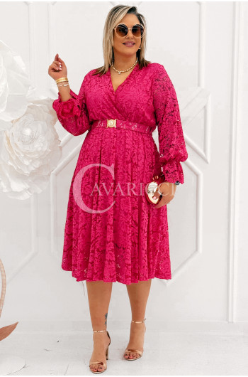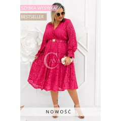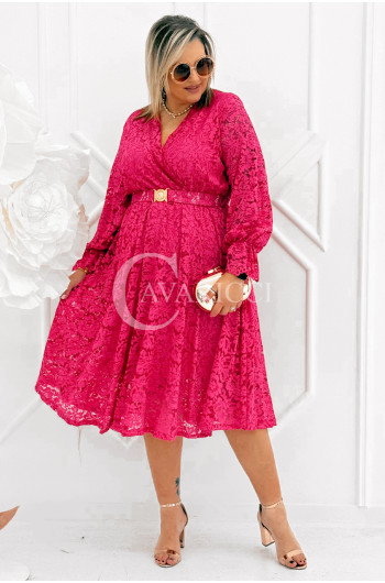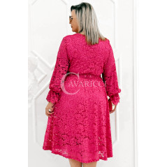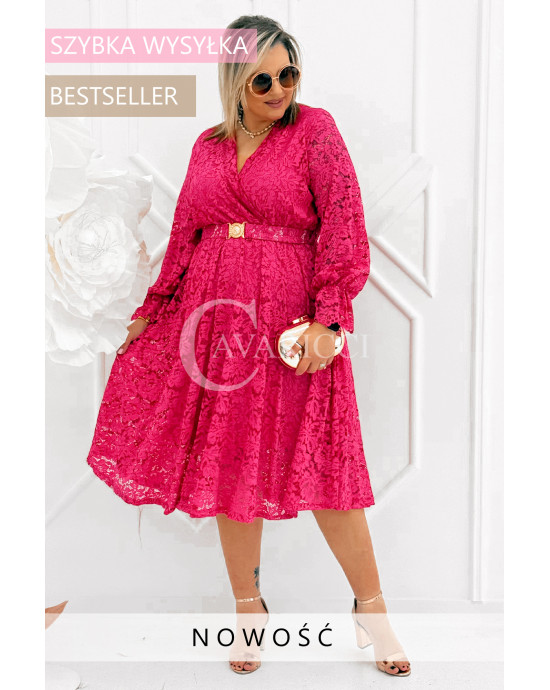 CORTONA - Wiosenna koronkowa sukienka z paskiem w kolorze fuksji