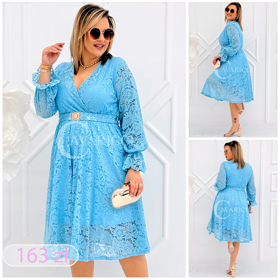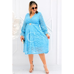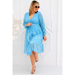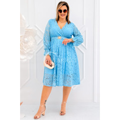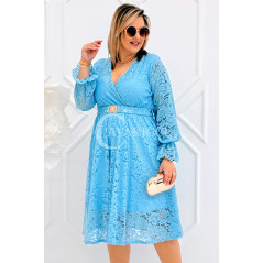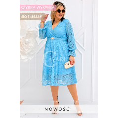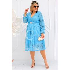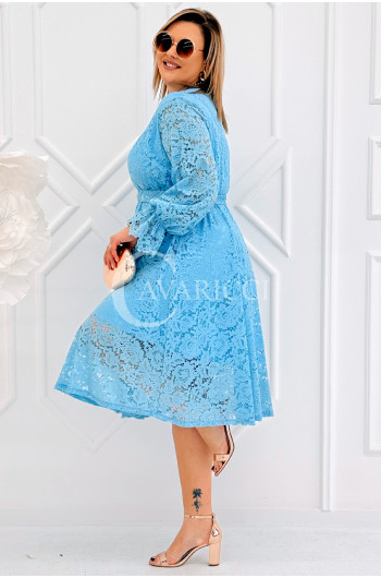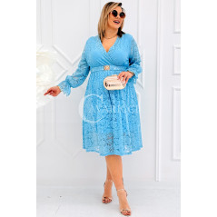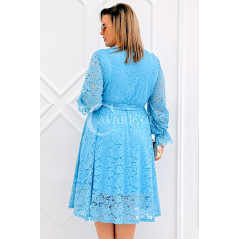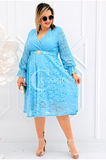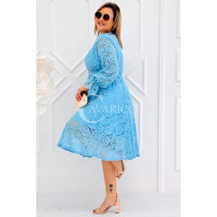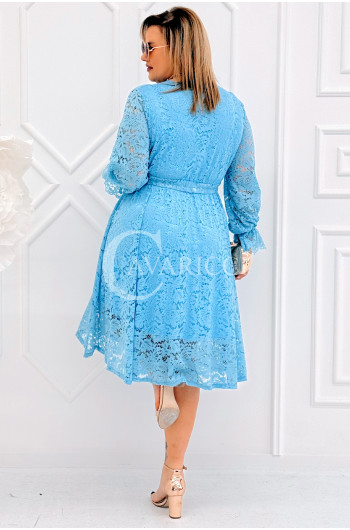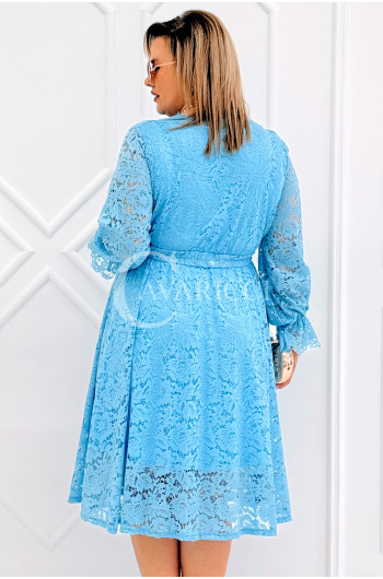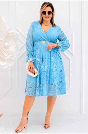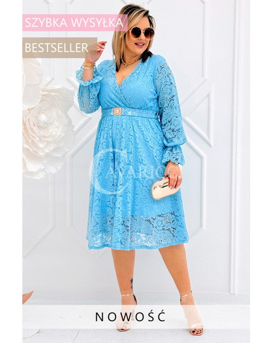 CORTONA - Wiosenna koronkowa sukienka z paskiem w kolorze błękitnym