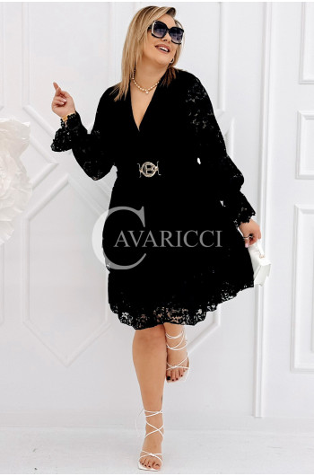 CORTI - Wiosenna koronkowa sukienka do kolan z paskiem w kolorze czarnym
