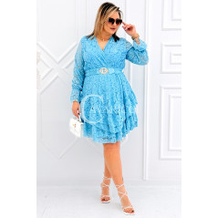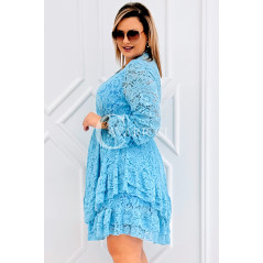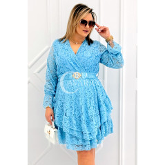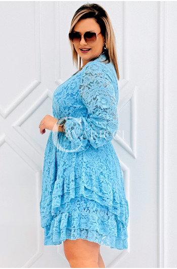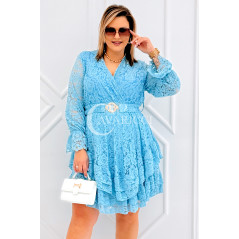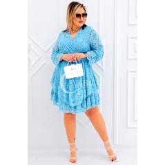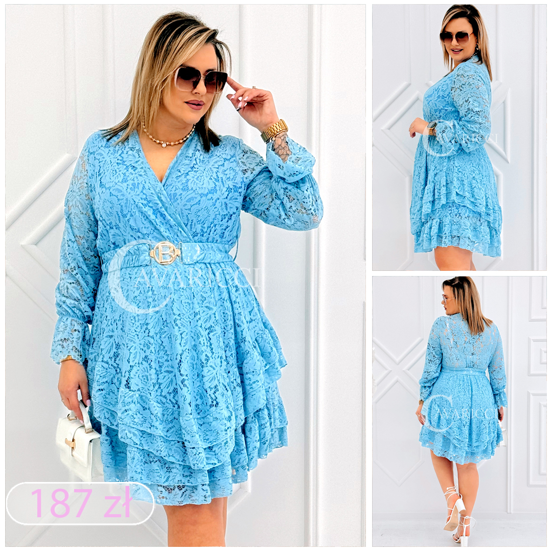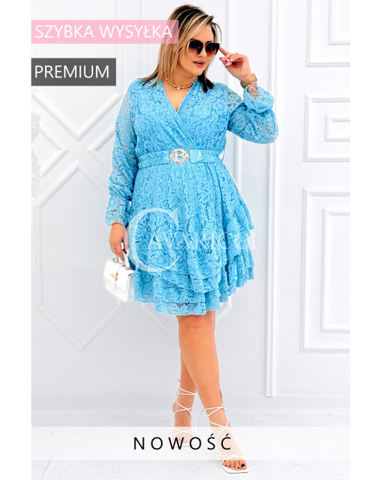 CORTI - Wiosenna koronkowa sukienka do kolan z paskiem w kolorze błękitnym