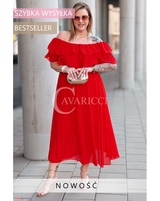 ERCILIA- Sukienka wieczorowa typu hiszpanka w kolorze czerwonym