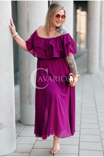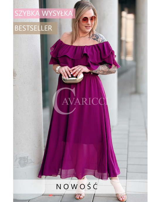 ERCILIA- Sukienka wieczorowa typu hiszpanka w kolorze purpurowym