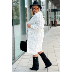 ASTIANO - Niesamowity długi kardigan z frędzlami w kolorze śmietankowym