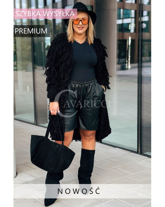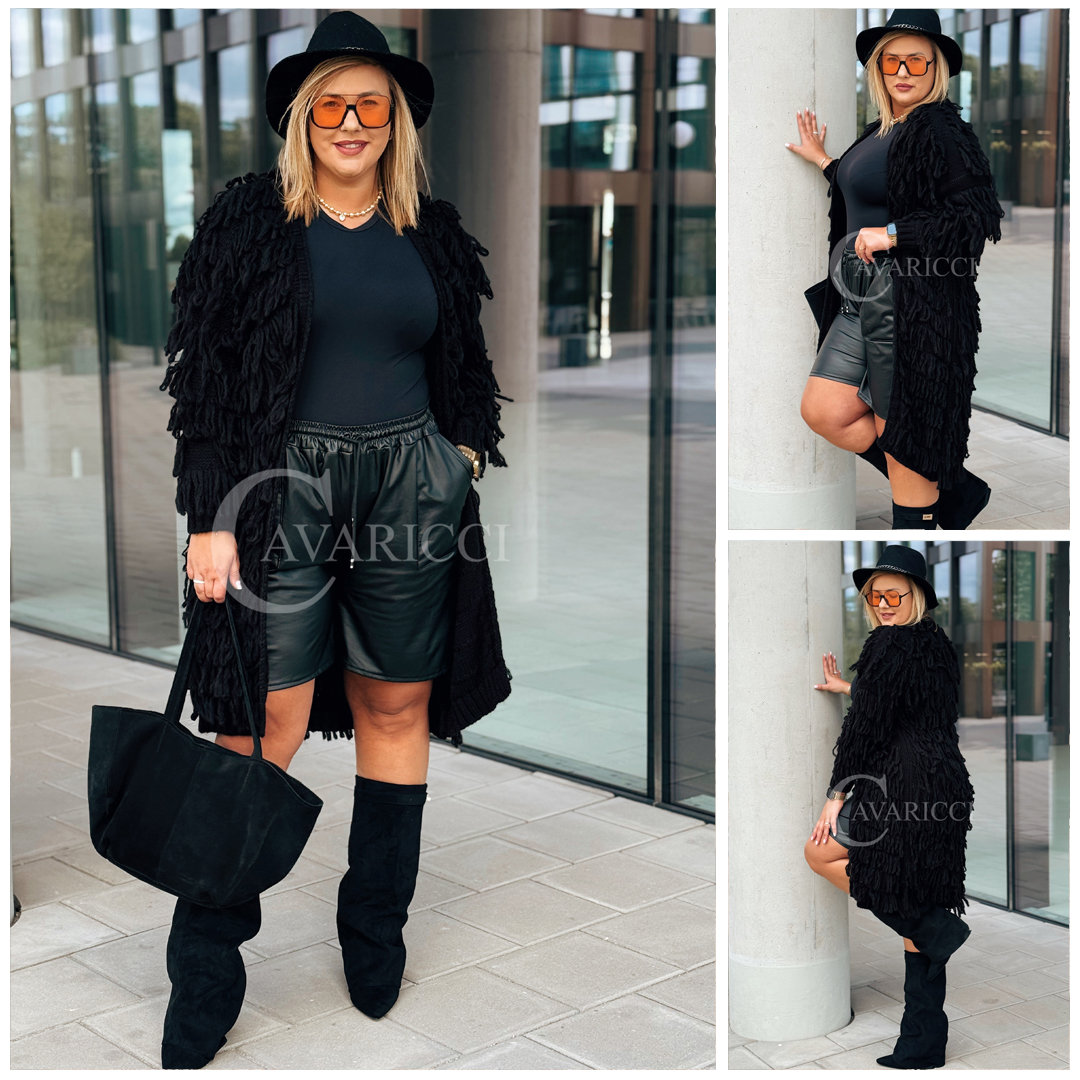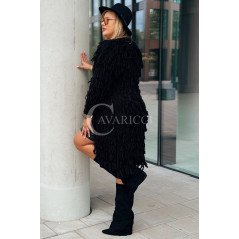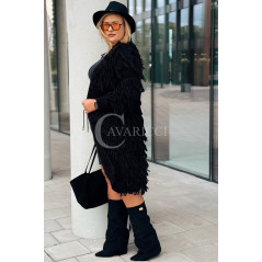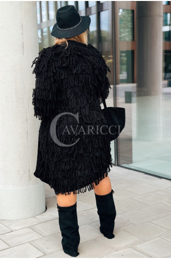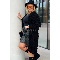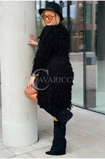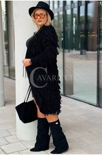 ASTIANO - Niesamowity długi kardigan z frędzlami w kolorze czarnym