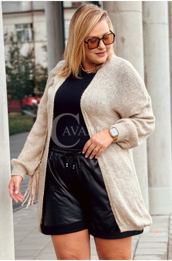 CENTO - Długi klasyczny kardigan w kolorze beżowym