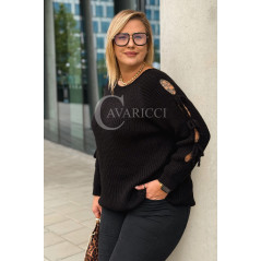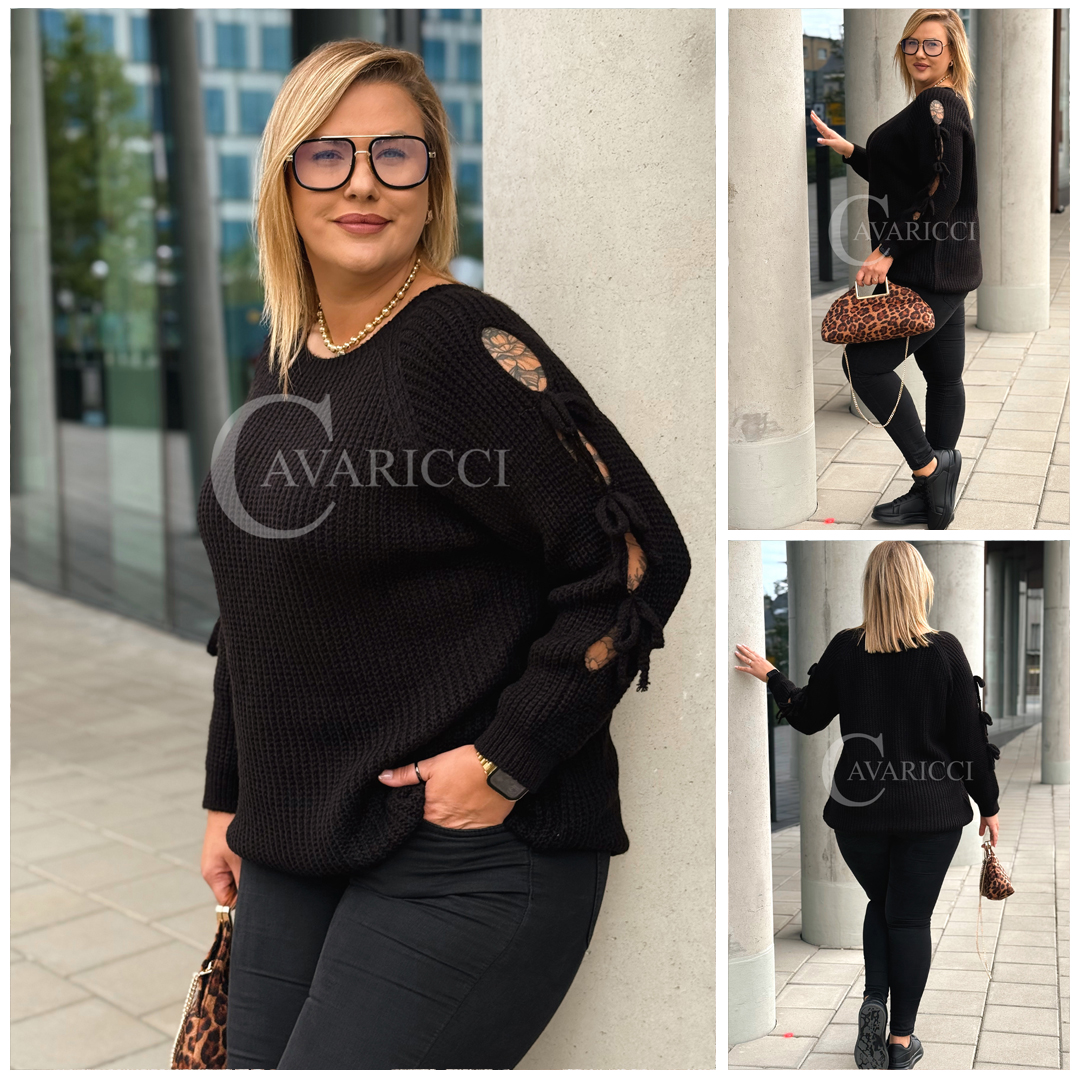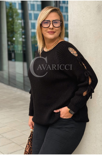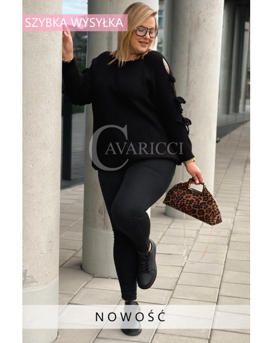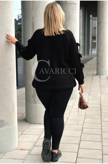 ARCO - Cudowny miękki sweterek z kokardkami w kolorze czarnym