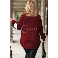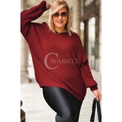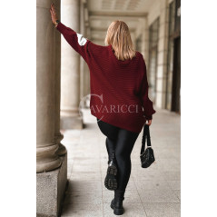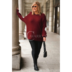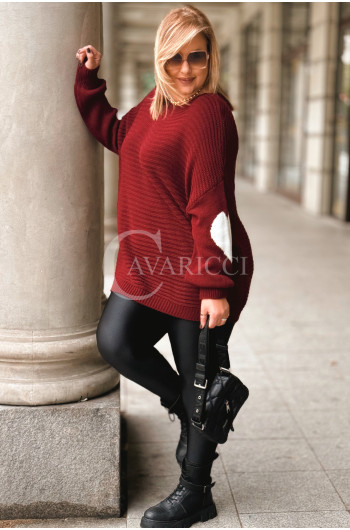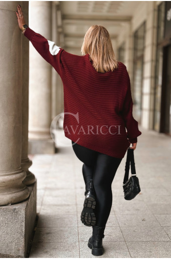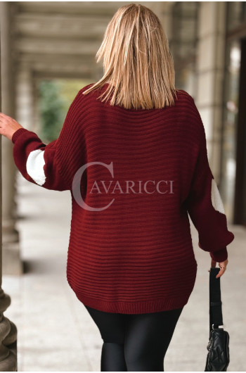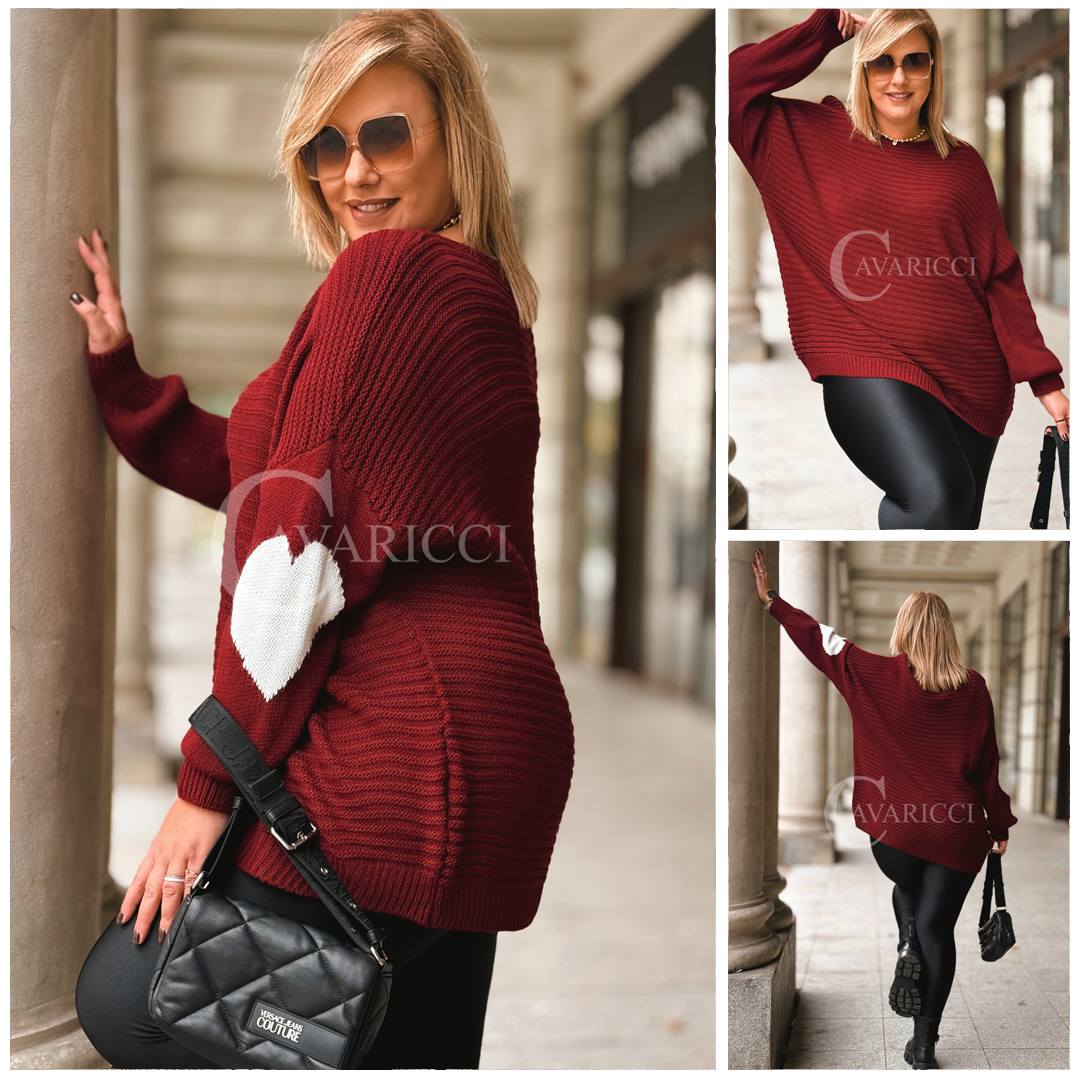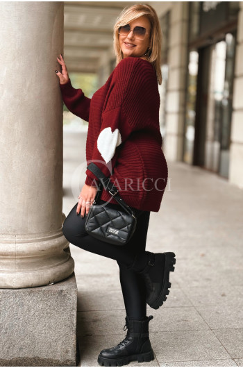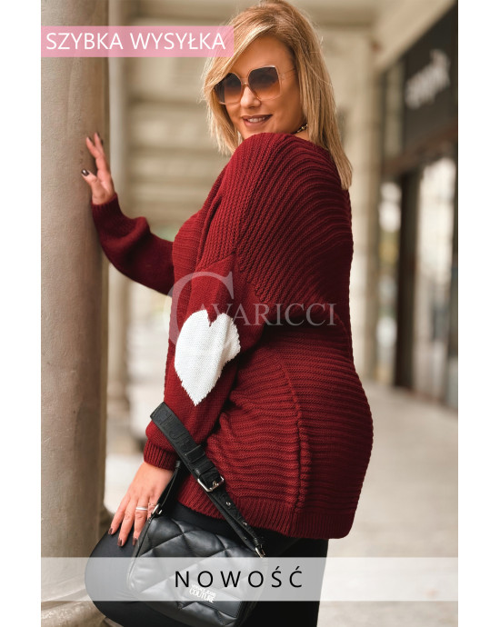 SILVIA - otulający sweter oversize z serduszkami w kolorze bordowym